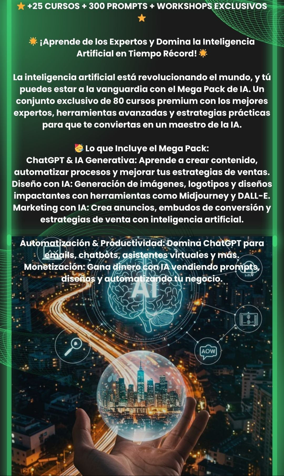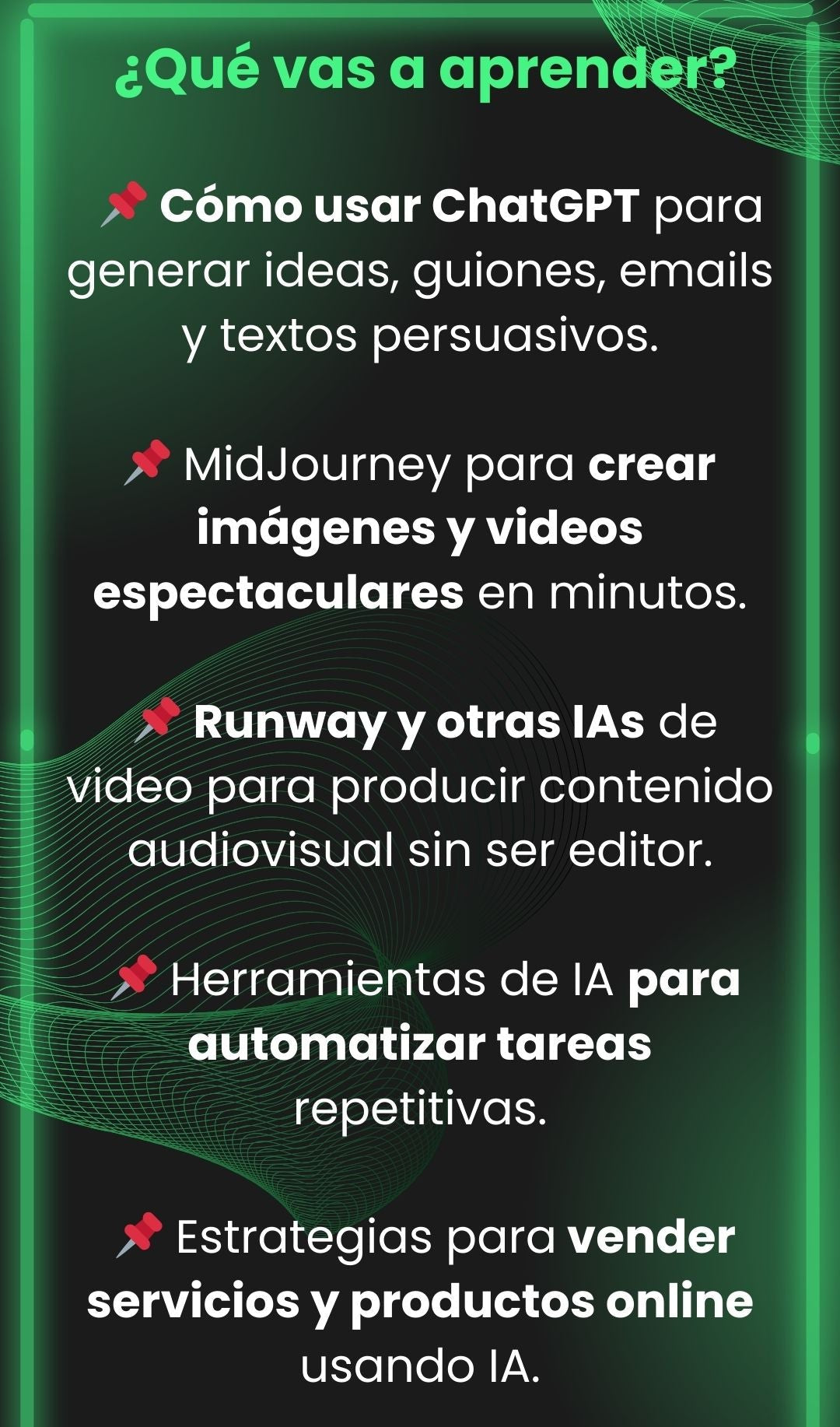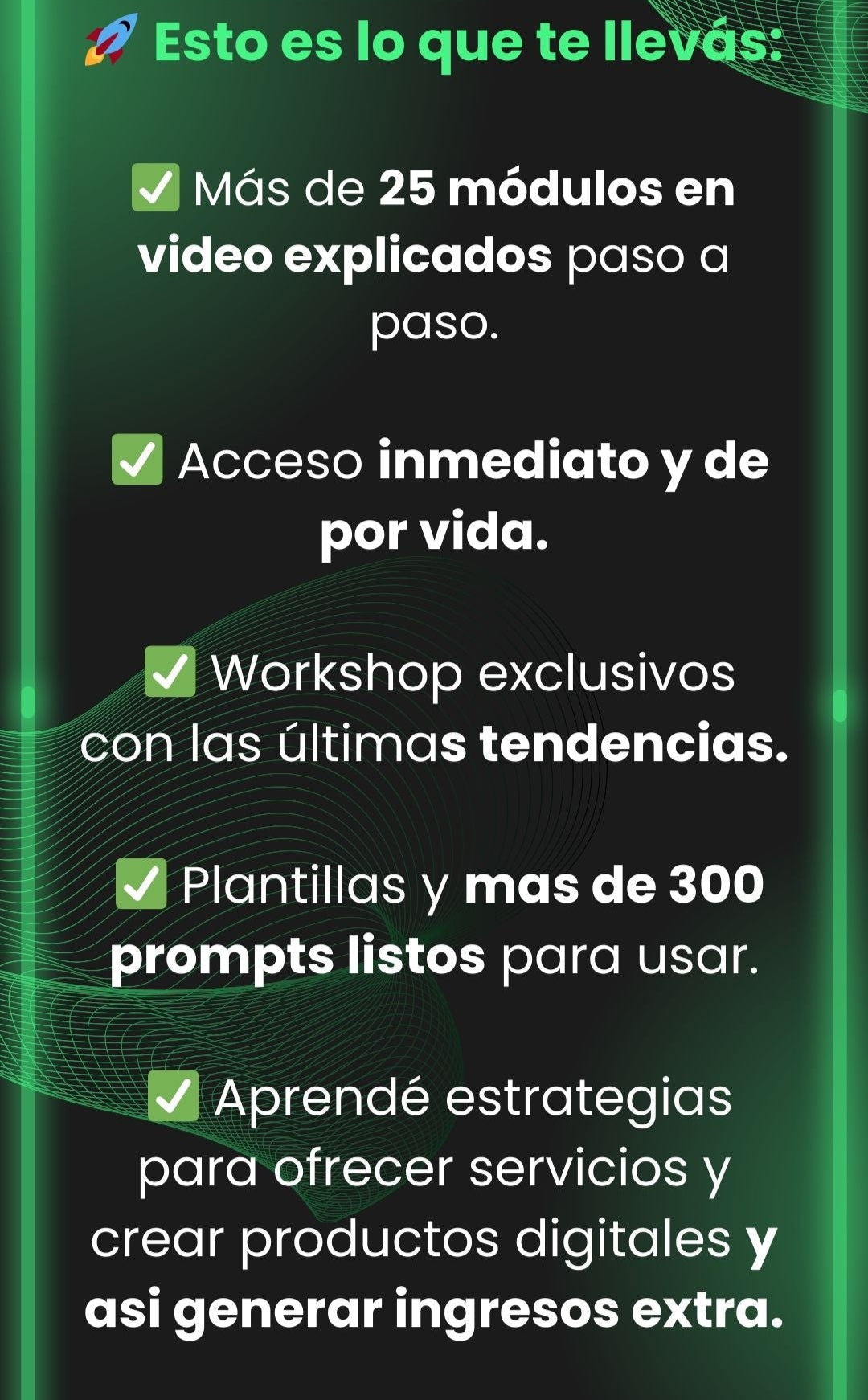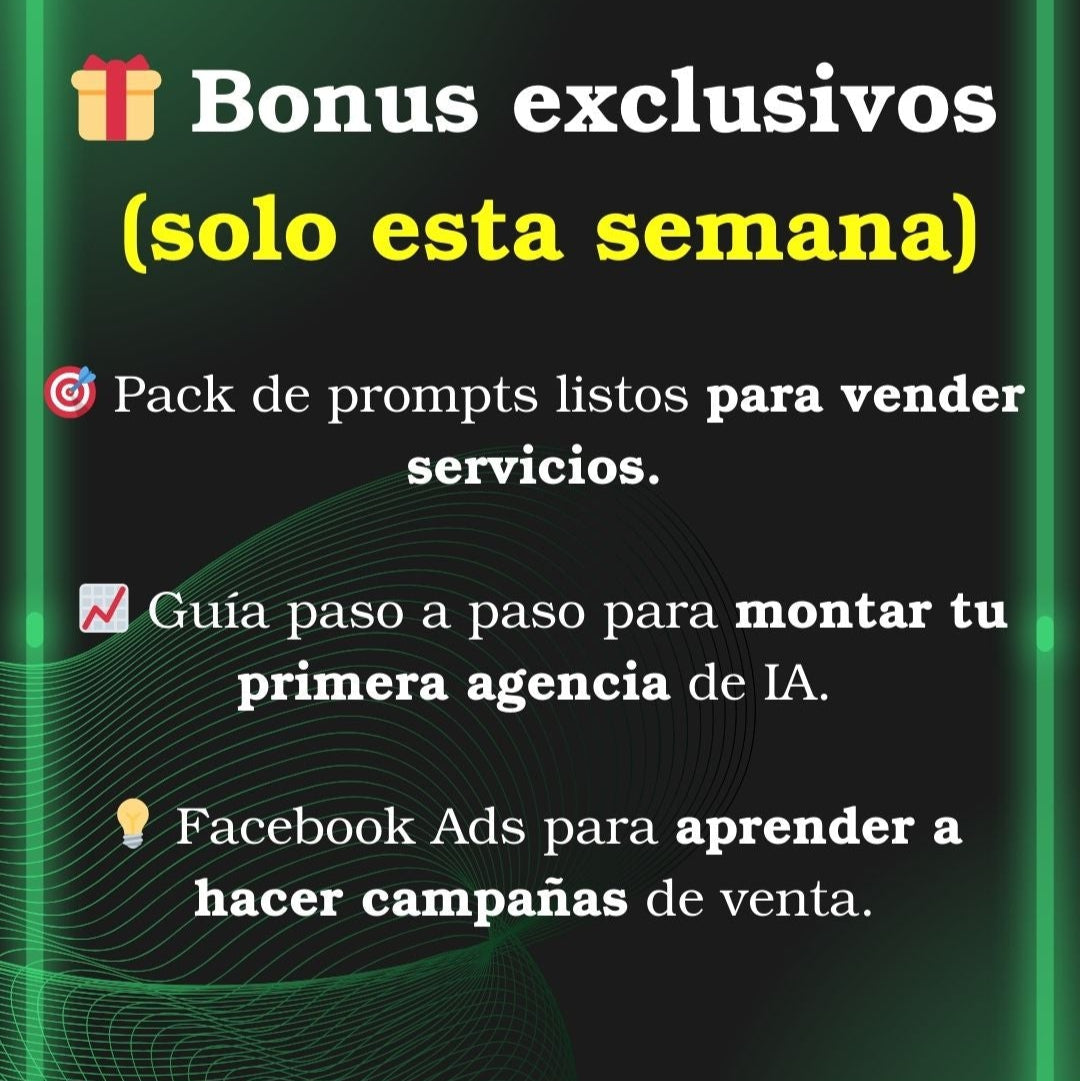 - ✅ Bonos exclusivos incluidos: Plantillas, prompts y mini-talleres de alto valor.
