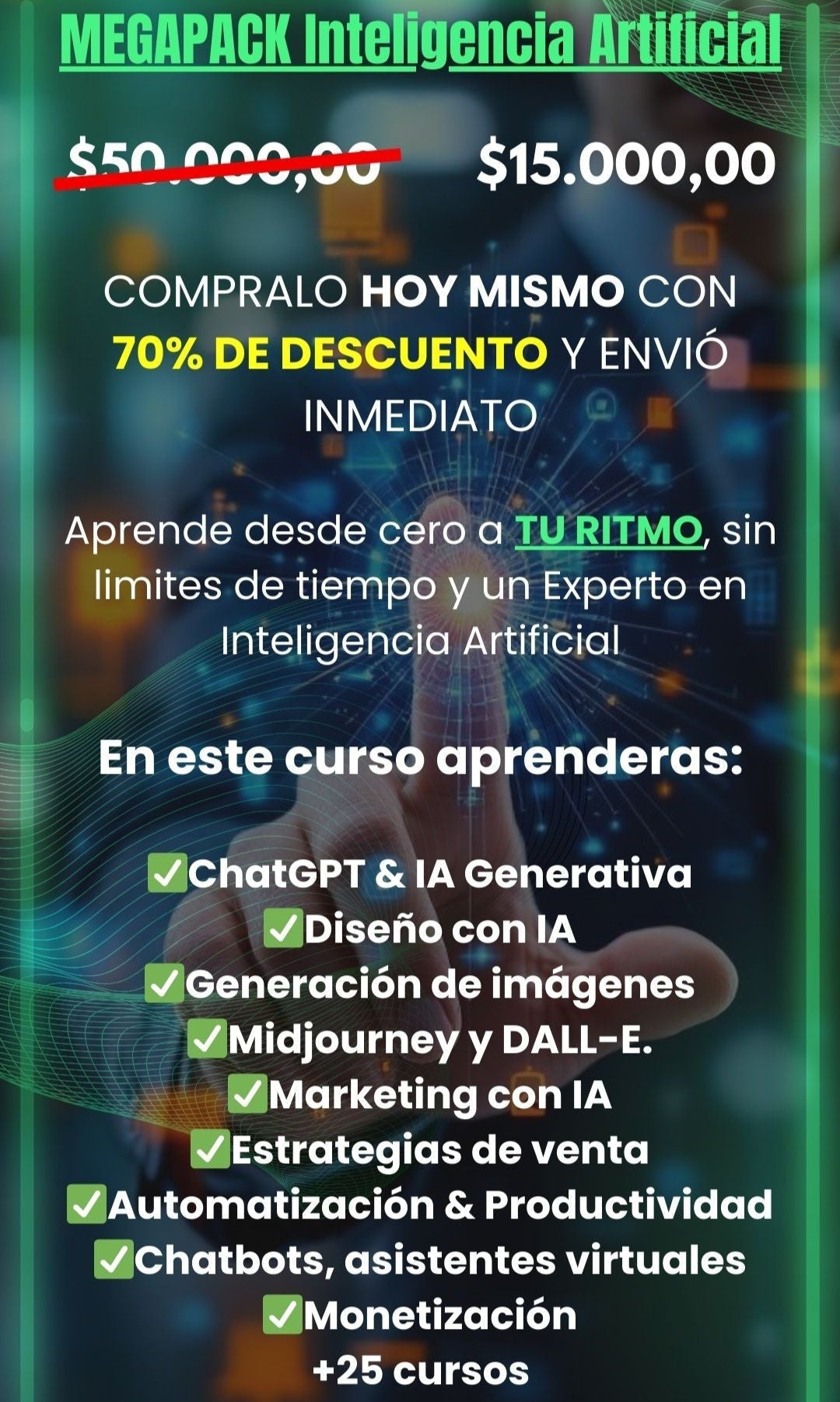 - Comprás el curso y accedés inmediatamente a todos los módulos y bonos.